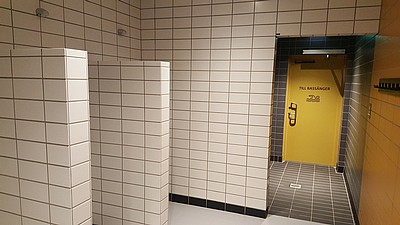 När man kommer ut från dessa omklädningsrum kommer man rakt till dörren som leder in i multibassängen så ni kommer inte behöva gå runt inne på hela badet eller liknande så det är väldigt bekvämt och praktiskt för oss.